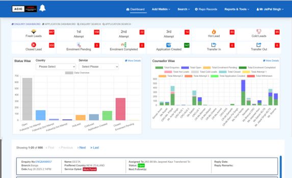 A .NET MVC-based CRM for the Education and Immigration sector. Centralizes document management, accounts, and communication, reducing admin workload by 40%.